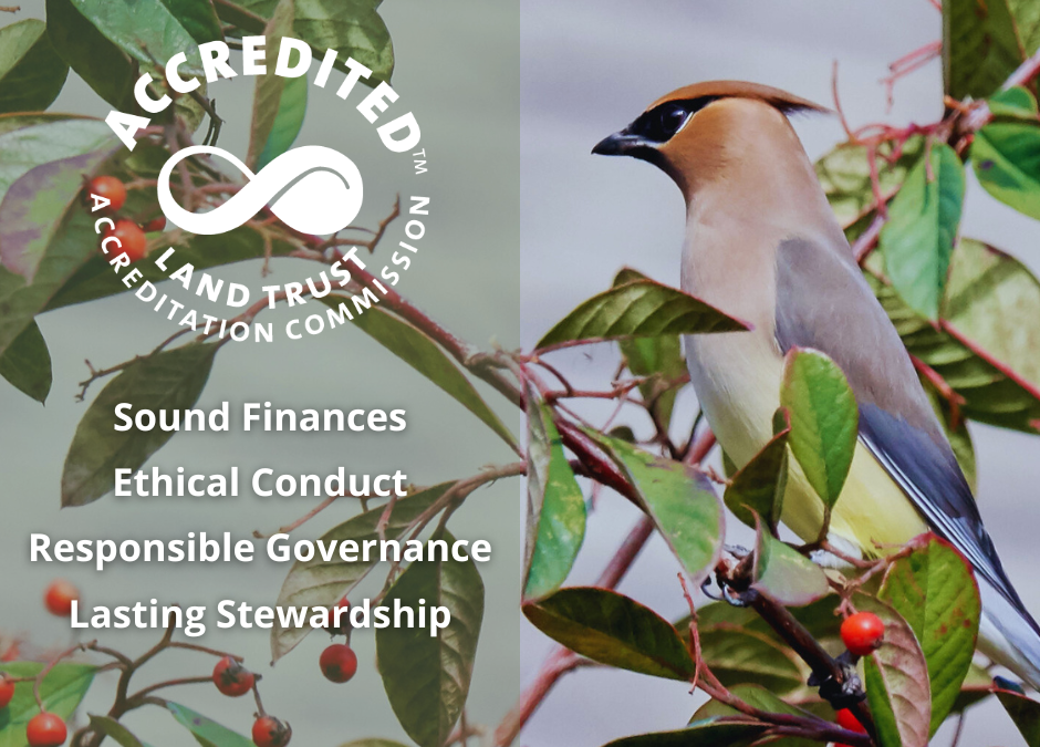 The Land Trust Accreditation Commission inspires excellence, promotes public trust and ensures permanence in the conservation of open lands by recognizing organizations that meet rigorous quality standards and strive for continuous improvement. The Commission, established in 2006 as an independent program of the Land Trust Alliance, is governed by a volunteer board of diverse land conservation and nonprofit management experts. For more, visit www.landtrustaccreditation.org.