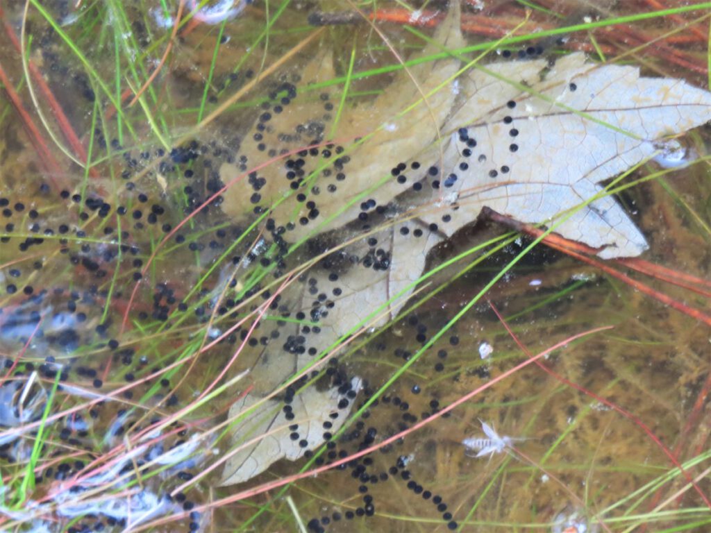 All of our Virginia frogs and toads lay their eggs in temporary or permanent waters, never on land. And all go through an egg, larval, and adult stage. The egg stage lasts anywhere from 3 to 30 days for our frogs while the larvae (tadpole) stage varies from 30 days in some treefrogs to 90 days in a Green Frog to up to two years in the American Bullfrog. Our smaller frogs, like the treefrogs and Northern Cricket Frogs breed in temporary waters, often called vernal pools because they appear in the spring then dry up. Such waters are free of fish which would, if present, be a voracious predator on frog eggs and larvae. Our larger species such as Bullfrog, American Toad and Green Frog inhabit larger and more permanent water bodies. The habitats have more vegetation for eggs and tadpoles to hide in; vernal pools typically have little vegetation.